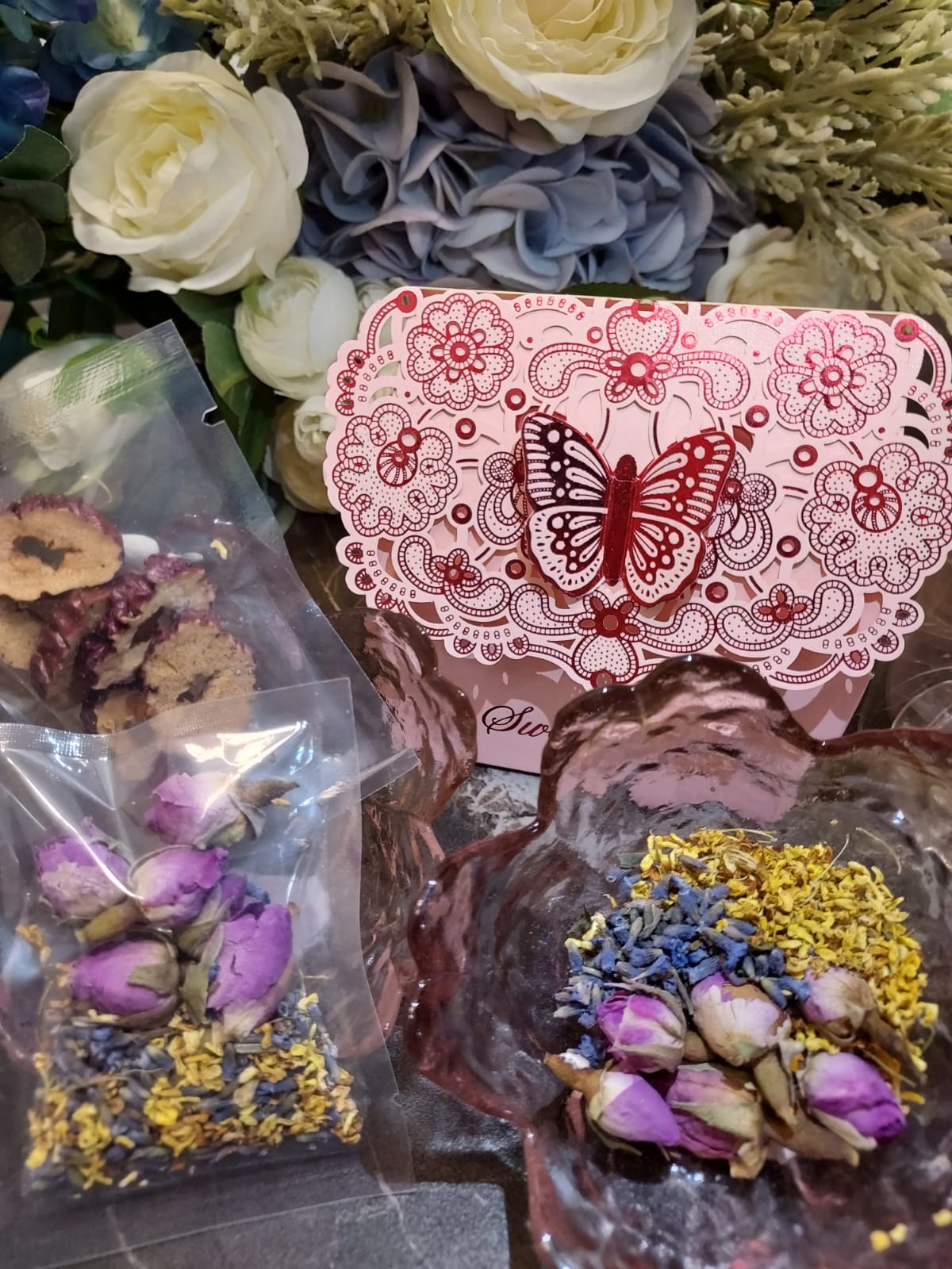 本店有很多不同種類的花茶和茶葉, 可作為小回禮之用, 大方得體。